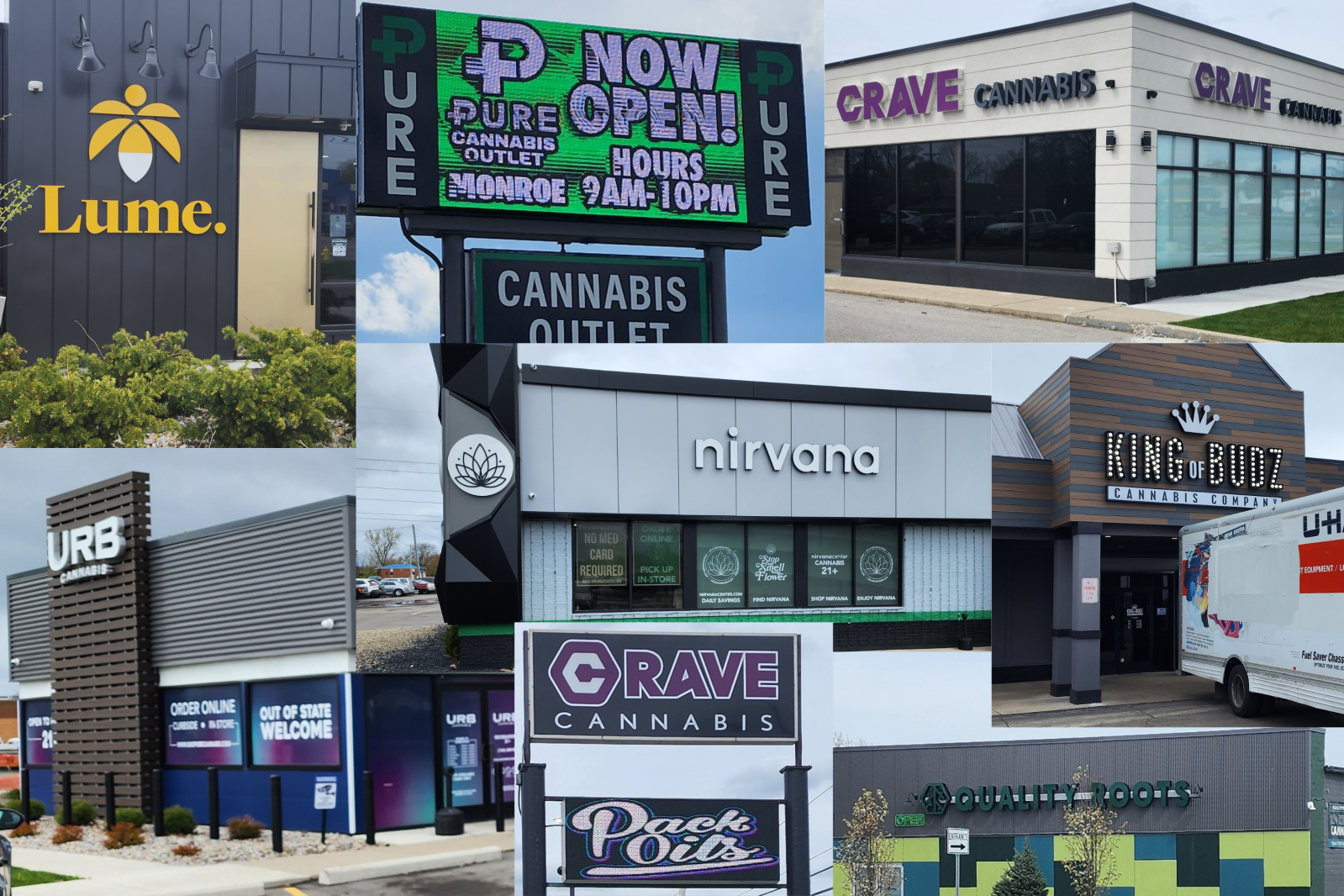 Monroe township also hugs the border of Ohio, a state where recreational marijuana is illegal. The short hop brings a multitude of Ohio consumers into Michigan to buy a product that they can’t purchase in their home states. Driving from Ohio and Indiana, drivers encounter an assortment of billboards advertising pot dispensaries to encourage “pot tourism.”