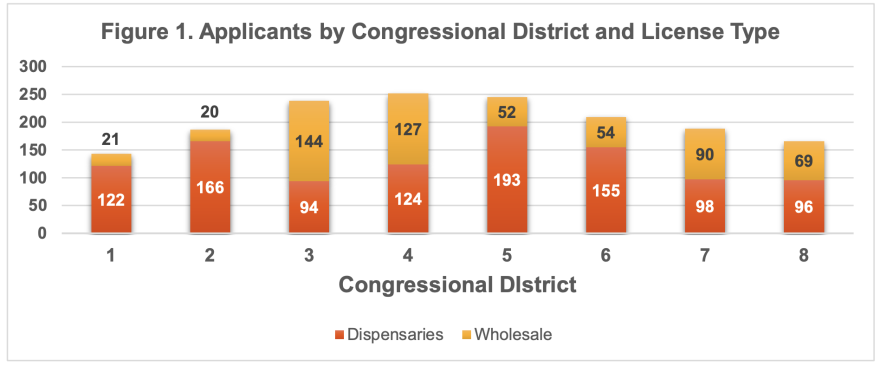 The strategy of flooding the lottery with applications to increase the odds was used mainly among the applications for dispensary licenses— and those licenses also drew the most out-of-state interest.